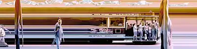 More recently, Jay Mark Johnson has used slit cameras for artistic effect.[8] Adam Magyar used a custom "slit scan" camera to record city traffic over time in his panoramic photo series Urban Flow (2006–2009).[9] In his next project, Stainless (2010–2011), Magyar made use of an industrial line scan camera and custom software to capture panoramic photos of moving subway traffic in major metropolitan cities, including New York, Paris and Tokyo. He later included high speed video from the perspective of the moving subway car, which captured exceptional three-dimensional detail of people waiting on the platform over a very small amount of time.[10]