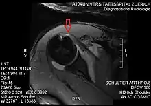 In comparison to a checking MR Arthrography Strobel K. et al. has arrived at the conclusion that through THI it is possible to achieve a generally improved visibility of joint and tendon surfaces, especially superior for subscapularis tendon abnormalities.[9]