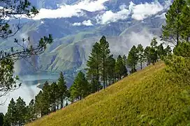 ![]() Sumatran pine tree (Pinus merkusii) over Lake Toba | |