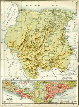 - ↑ In treaties between the Netherlands and the United Kingdom, the colony is consistently referred to as the Colony of Surinam, e.g. Convention between Great Britain and the Netherlands, relative to the Emigration of Labourers from India to the Dutch Colony of Surinam, the Accession of the Dutch colonies of Curaçao and Surinam to the International Union for the Protection of Industrial Property.