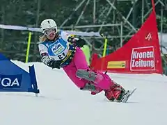 Svetlana Sergeyevna Boldykova (Russian: Светлана Серге́евна Болдыкова; born 7 July 1982 in Tashtagol, Kemerovo Oblast) is a Russian professional snowboarder based in Tashtagol.[1] Boldikova has to date competed in one Winter Olympic Games in 2006 where she would finish 8th along with several world cups but has to date only achieved one podium position a third placing in 2007 in Korea.[2]