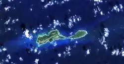 The Swan Islands (Spanish: Islas Santanilla or Islas del Cisne, named Islas de las Pozas by Christopher Columbus in 1502) is a chain of three islands located in the northwestern Caribbean Sea, approximately 153 km (95 mi) northeast of the eastern coast of Honduras,[1] with a combined land area of 3.1 km2 (1.2 sq mi).[2]