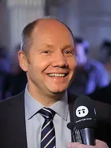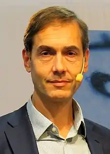 In April 2018, three members of the academy board resigned in response to a sexual-misconduct investigation involving photographer and cultural figure Jean-Claude Arnault, husband of board member Katarina Frostenson.[11] The self-proclaimed "nineteenth member of the Swedish Academy,"[12] Arnault was accused by at least 18 women of sexual assault and harassment;[11] he denied all accusations.[13] The three members resigned in protest over the lack of appropriate action against Arnault.[11][14][15] Two former permanent secretaries, Sture Allén and Horace Engdahl, called the current leader, Sara Danius, a weak leader.[11]