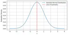 In statistics, a symmetric probability distribution is a probability distribution—an assignment of probabilities to possible occurrences—which is unchanged when its probability density function (for continuous probability distribution) or probability mass function (for discrete random variables) is reflected around a vertical line at some value of the random variable represented by the distribution. This vertical line is the line of symmetry of the distribution. Thus the probability of being any given distance on one side of the value about which symmetry occurs is the same as the probability of being the same distance on the other side of that value.
