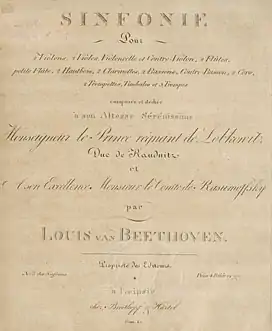 Cover of the symphony, with the dedication to Prince J. F. M. Lobkowitz and Count Rasumovsky