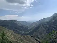 Syunik was a big region in the east of historical Armenia.[9][10][1] In the west and north-west, it bordered on the Ayrarat Province;[11] in the east, the natural border between Syunik and Artsakh passed through the Hakari river (left inflow of the Aras).[11] In the north-west, Syunik shared a border with lands situated in the direct neighborhood of Ganja, and in the south-west, it bordered on Nakhichevan[11] (Vaspurakan Province). The north of Syunik comprised Gegharkunik[12][13] and Sotk which lied on the coast of Lake Sevan.[12] In the south, the territory of Syunik extended to the Aras River.[9][11]