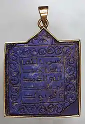 In Islam, using amulets as protection is considered Shirk.[6] However, use of verses of the Qur'an in slips of parchment rolled inside talismanic objects has been common throughout the Muslim World. For example, Muslim Ibn al-hajjaj instructed military commanders to inscribe Quran 54:46 on a cloth with rosewater, musk, and amber when Libra is rising and in the hour of the sun, and to carry it to the battlefield to prosper over oppressors and nonbelievers.[7]