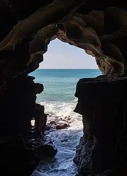 The Greeks knew this town as Tingis and, with some modification, record the Berber legends of its founding. Supposedly Tinjis, daughter of Atlas and widow of Antaeus, slept with Hercules and bore him the son Syphax. After Tinjis' death, Syphax then founded the port and named it in her honour.[13] The gigantic skeleton and tomb of Antaeus were tourist attractions for ancient visitors.[13] The Caves of Hercules, where he supposedly rested on Cape Spartel during his labors, remain one today.