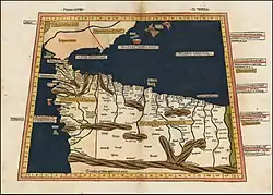 Tangier was founded as a Phoenician colony, possibly as early as the 10th century BCE[7][8] and almost certainly by the 8th century BCE.[9] The majority of Berber tombs around Tangier had Punic jewelry by the 6th century BCE, speaking to abundant trade by that time.[10] The Carthaginians developed it as an important port of their empire by the 5th century BCE.[7][8] It was probably involved with the expeditions of Hanno the Navigator along the West African coast.[7][9] The city long preserved its Phoenician traditions, issuing bronze coins under the Mauretanian kings with Punic script and others under the Romans bearing Augustus and Agrippa's heads and Latin script obverse but an image of the Canaanite god Baal reverse.[3] Some editions of Procopius place his Punic stelae in Tingis rather than Tigisis;[11] in either case, however, their existence is highly dubious.[12]