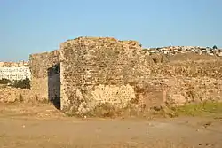 Count Julian of Ceuta supposedly led the last defences of Tangier against the Muslim invasion of North Africa.[19] Medieval romance made his betrayal of Christendom a personal vendetta against the Visigoth king Roderic over the honour of his daughter,[20] but Tangier at least fell to a siege[21] by the forces of Musa bin Nusayr sometime between 707[22] and 711.[23][24] While he moved south through central Morocco, he had his deputy at Tangier Tariq ibn Zayid, Musa's mawla [20][25] launch the beginning of the Muslim invasion of Spain.[22] Uqba ibn Nafi was frequently but erroneously credited with Tangier's conquest by medieval historians, but only owing to Musa's later commission at the hands of Al-Walid I.[26]