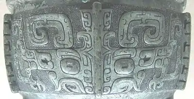 ![]() Taotie on a ding from the Shanghai Art Museum | |||||||||||||||||||||||||||||||