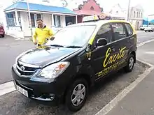 South Africa has two kinds of taxis, minibus taxis which are vehicles that seat fifteen, and meter cabs that seat between four and seven passengers. Minibus taxis and meter taxis are mostly Toyota-manufactured. Minibus taxis use the Toyota Ses'fikile (a modified Quantum/HiAce produced specifically to meet the regulatory requirements of the South African taxi market)[2] and meter taxis Toyota Avanza. Minibus operate on specific routes like buses. Meter taxis cabs operate from point to point.