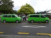 A variation of the shared taxi also exists. These are usually 12-seater Toyota vans. These taxis ply along a fixed route, stopping mostly at bus stops to pick up and drop off passengers. Passengers usually get into the taxi that is headed towards their destination. To attract more passengers, taxis stick to highways and main roads. If one wishes to go towards a place, not along the main road, it is generally more economical to use a shared van to commute between two bus stops and then switch over to another taxi headed for the destination, as opposed to taking the regular taxi to commute between the two places.