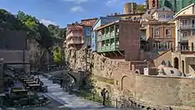 Tatar bazaar and with the Metekhi Orthodox church seen on the cliff
