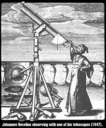 The earliest existing record of a telescope was a 1608 patent submitted to the government in the Netherlands by Middelburg spectacle maker Hans Lipperhey for a refracting telescope.[5] The actual inventor is unknown but word of it spread through Europe. Galileo heard about it and, in 1609, built his own version, and made his telescopic observations of celestial objects.[6][7]