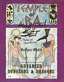 Temple of Ra, Accursed by Set is an adventure in which the player characters explore a magically-built temple dedicated to the god Ra, trying to find the Princess Rukmini of Hindustan and free her from Set. The characters will encounter guardians serving Set, such as the Gorgriffspidrascorp, as well as Hindustani creatures looking for the princess as well.[2]