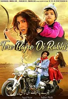 Tere Bajre Di Rakhi is a Pakistani Punjabi-language film written and directed by Syed Noor,[1] with music composed by Zulfiqar Ali. It stars Saima Noor making her comeback in Punjabi Industry after 6 years with Nadeem Baig, Mustafa Qureshi, Iftikhar Thakur, Babar Ali along with debutant Abdullah Khan and Jannat Mirza in pivotal roles.[2] The film released on the occasion of Eid-ul-Fitr 2022.[3]