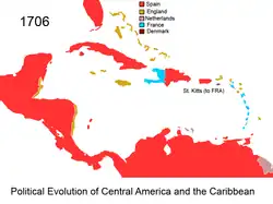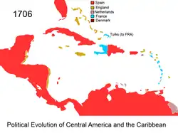 In 1700 Spain controlled most of the mainland portions of North America, Central America, and South America that surround the Caribbean as well as most of the largest islands of the Caribbean. Other players were the: