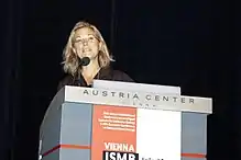 ![]() Terry Gaasterland speaking at the Intelligent Systems for Molecular Biology (ISMB) conference in Vienna in 2011 | |