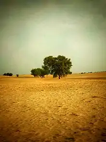 The region is characterized by sand dunes, prone to massive shifting and rolling, as well as scanty rainfall, high diurnal variation of temperature and high wind velocity.[5] Aridity is a common feature and perennial grasses make up much of the vegetation.[6]