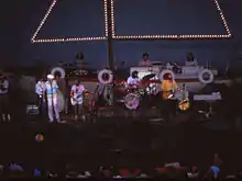 On November 27, 1976, Wilson appeared as the featured musical guest on NBC's Saturday Night, during which he performed "Love Is a Woman", "Back Home", and "Good Vibrations".[60] It was his first solo television appearance since 1967's Inside Pop: The Rock Revolution. Producer Lorne Michaels had insisted that Wilson appear without his bandmates, who were playing their third night of sold-out concerts at nearby Madison Square Garden.[16][nb 2] Another solo appearance on The Mike Douglas Show, which included an interview with Wilson about his past drug use, was filmed days earlier, but was not broadcast until December 8.[16] On December 31, the band played a fifteenth anniversary celebration concert at the Los Angeles Forum, a performance that included "Airplane".[32]