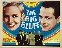 The Big Bluff is a 1933 American comedy film directed by Reginald Denny and starring Denny, Claudia Dell and Donald Keith.[1] It was produced by George W. Weeks and the independent Tower Productions.[2] The film's sets were designed by the art director Paul Palmentola.