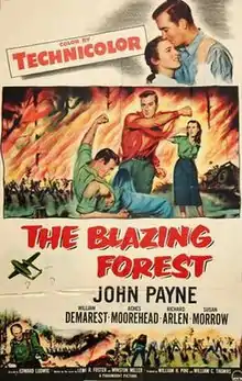 The Blazing Forest is a 1952 American lumberjack adventure film directed by Edward Ludwig and written by Lewis R. Foster and Winston Miller. The film stars John Payne, William Demarest, Agnes Moorehead, Richard Arlen, Susan Morrow, Roscoe Ates and Lynne Roberts. The film was released in December 1952, by Paramount Pictures.[1][2][3]