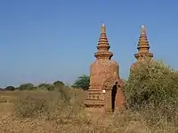 Buddhism is a major theme in the film, with a monk saying "Burma is Buddha's country."[6] Author Catherine Russell writes that Mizushima, initially stealing a monk's robes and disingenuously posing as a Buddhist monk, becomes more devout. However, Russell argues that Mizushima's Buddhism, in his salute of graves and use of distinctly Japanese boxes, remains a form of Japanese nationalism.[5] Professor Ronald Green argues that Mizushima's mission as a monk to bury Japanese soldiers is a pilgrimage, in which his mounds resemble Buddhist stupas, and his practice of saluting the graves is reminiscent of Buddhist rituals at stupas.[7] The film's visuals also communicate Buddhist messages, with the panoramas in land, and then the ocean at the end of the film, showing the "broadness" of Mizushima's messages.[8] Shots of full moons invoke Buddhist symbols of awakening.[9]