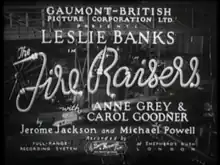 The Fire Raisers is a 1934 British drama film directed by Michael Powell.[1][2] It was described by Powell as "a sort of Warner Brothers newspaper headline story;" and marked the first of his four films with actor Leslie Banks.[3]