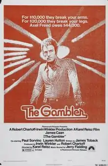 The Gambler is a 1974 American crime drama film written by James Toback and directed by Karel Reisz. It stars James Caan, Paul Sorvino, and Lauren Hutton. Caan's performance was widely lauded and was nominated for a Golden Globe.