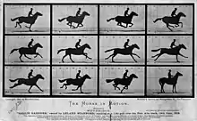- ↑ "The horse in motion, illus. by Muybridge. "Sallie Gardner", owned by Leland Stanford, running at a 1:40 gait over the Palo Alto track, 19 June 1878: 2 frames showing diagram of foot movements". Library of Congress. Retrieved March 30, 2020.