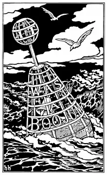 To illustrate the poem Carroll chose Henry Holiday, whom he had met in 1869[20] or 1870.[25] At the time Carroll approached him to ask if he could create three illustrations for the poem, Carroll had completed three "fits", as he called the parts of his poem – fit can mean either canto or convulsion[26] – "The Landing", "The Hunting", and "The Vanishing".[25] He intended to title it The Boojum and include it in his fantasy novel Sylvie and Bruno, which was unfinished at the time.[25] However, in late October 1875, Carroll thought about having it published during Christmas; this proved impossible, as the wood engraving for the illustrations needed three months to be complete.[27] By the time Holiday had completed the sketches and sent them to Carroll, Carroll had already created a new fit requiring an illustration. They worked this way until Holiday had created nine illustrations as well as the front cover and the back cover of the book.[20] Thus, among the ten illustrations shown below, one illustration is not by Holiday.[28] The "Ocean Chart" is typographic art whereas electrotypes made from Joseph Swain's woodblock engravings were used to print Holiday's illustrations.
