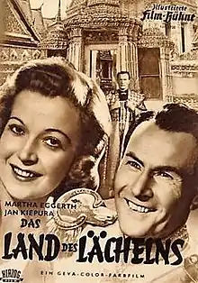 The Land of Smiles (German: Das Land des Lächelns) is a 1952 West German operetta film directed by Hans Deppe and Erik Ode and starring Mártha Eggerth, Jan Kiepura and Walter Müller.[1] It is an adaptation of the operetta The Land of Smiles composed by Franz Lehár which had previously been made into a 1930 film starring Richard Tauber.[2] It was shot at the Tempelhof Studios in Berlin and on location in Thailand. The film's sets were designed by the art directors Willi Herrmann, Peter Schlewski and Heinrich Weidemann.