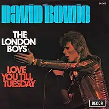 "The London Boys" is a song by the English musician David Bowie. It was first released as the B-side of the single "Rubber Band" in the United Kingdom on 2 December 1966. It was originally written and demoed in 1965 with the Lower Third for potential release as the artist's debut single for Pye Records but it was rejected. After a year of rewrites, he recorded a new version with a new band, the Buzz, which helped secure him a record contract with Decca-subsidiary Deram Records. Unlike the A-side, "The London Boys" retains the Mod feel of Bowie's previous singles. The dark lyrics concern a 17-year-old who leaves home for London and becomes embroiled in the Mod scene (the "London Boys" of the title), turning to pills to fit in.[1] Like his previous singles, it failed to chart. Decca later issued it as an A-side in 1975..