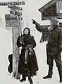 Once she is alone with him, he reveals his identity and offers to revoke the order if she will live under his protection. With indomitable spirit, she denies him. Instead, she secretly helps women escape to the border. An orgy of brutality follows. Kosloff rapes potter Vasili Lazoff's (Marc McDermott) daughter. Marie locks Kameneff's sister, Nadia Kameneff (Marguerite Clayton), in a room to keep her away from one of his lustful henchmen. He tries to break open the door with an ax, and Marie grabs a large whip and beats him. He throws the ax, missing her face by inches. He then wrestles her to the floor before being driven off by an ax-wielding Lazoff. Marie is caught aiding women to escape and becomes a candidate for execution. She is arrested and taken to Kameneff's headquarters. Lazoff becomes an instrument of vengeance and chokes the brutal Kosloff to death. Kameneff, meanwhile, has executed a group of women, including his own sister. Michail, despite being told that Marie is Kameneff's mistress, goes to her rescue, and reads her innocence in her eyes. Lazoff holds the pistol that Kameneff uses to commit suicide. Michail and Marie escape across the border, to enjoy new freedom and true happiness, though betrothed under the unlucky full moon (sic, confusing full moon with new moon; but, in the film, only a crescent moon is shown.) [Source: adapted and compiled from various sources at https://web.stanford.edu/~gdegroat/NT/oldreviews/nm.htm#variety, with additional information from Janiss Garza at https://www.allmovie.com/movie/v103825]