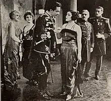 In the midst of the gaiety, a Bolshevik mob led by Orel Kosloff (Stuart Holmes) invades the palace to ruthlessly kill and plunder, leaving the palace in ruins. Kosloff is actually a tool of an uninvited guest, Theo Kameneff (Charles Gerard), who is only a pretend Red, being paid by a foreign government to ruin Russia. The Prince makes one gallant fight after another to save Marie, and finally succeeds in sending her away in a carriage, but loses track of her as he makes his own escape.