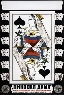 The Queen of Spades (Russian: «Пиковая дама», romanized: Pikovaya dama) is a 1916 film adaptation of the 1834 Aleksandr Pushkin short story of the same name. It is noted for its high production values, directorial technique and psychological depth of acting, especially by Ivan Mosjoukine. It is considered to be one of the best pre-revolutionary Russian films.
