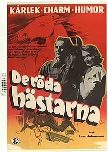 The Red Horses (Swedish: De röda hästarna) is a 1954 Swedish sports drama film directed by Ivar Johansson and starring Gun Arvidsson, Jan-Erik Lindqvist and Rut Holm.[1] It is a remake of the 1950 Danish film The Red Horses, itself based on a 1943 novel by Morten Korch. It was shot at Svensk Talfilm's studios in Malmö and Täby. Location shooting took place around Malmö including Jägersro, Solvalla and Hörby.