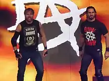 On the July 31 episode of Raw, Rollins was confronted by Raw Tag Team Champions Cesaro and Sheamus, and later won a match against Sheamus after which the duo attacked Rollins before Ambrose came down to make the save, though backstage Ambrose told Rollins that he would not help him if Rollins got outnumbered again.[127] The following week on Raw, after Rollins lost a rematch against Sheamus and was once again attacked after the match, Ambrose did not help him. Later that night, Ambrose defeated Cesaro, only to be subsequently attacked by the duo before being saved by Rollins.[128][129] On the August 14 episode of Raw, an argument in the ring culminated in Ambrose and Rollins brawling with each other only to fight off Cesaro and Sheamus and performing a fist bump to a loud ovation.[130] Rollins and Ambrose defeated the champions at SummerSlam, winning the titles.[20][131]