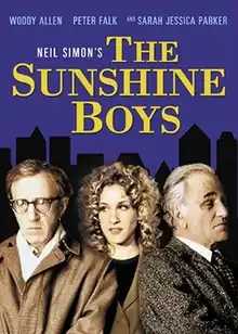 The Sunshine Boys is a 1996 American comedy television film directed by John Erman and based on the 1972 play of the same title by Neil Simon about two legendary (and cranky) comics brought together for a reunion and revival of their famous act. The film stars Woody Allen and Peter Falk as the comedy duo alongside Sarah Jessica Parker. It premiered on December 28, 1997, on Hallmark Hall of Fame on CBS.[1]