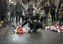 A variant of this in the 2000s introduced the Laair Vane, another Manx Christmas tradition, who fooled about the dance before being carried out on the swords.[26] However, the modern version of the dance is almost universally performed with a lock of swords held aloft at the conclusion of the dance, a feature introduced in the 1980s through contact with English folk dance societies.[26] However, there is some evidence that such a finish to the dance was used in a performance under Leighton Stowell as far back as 1939.[18]