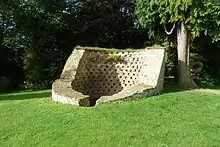 In the grounds is a scheduled ancient monument, a dovecote dating from the 14th or 15th century.[7] Its thick circular walls enclose an area 4.8 metres (16 ft) in diameter. Within the walls there were originally about 500 nest holes where pigeons were bred for meat. At some point before 1920 the roof fell in, "during the owner's temporary absence from the property"[8] followed later by part of the walls.