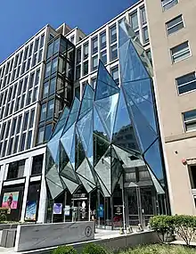 As of October 7, 2013, with all legal issues resolved and with local approval in hand for a planned unit development, with commercial and religious uses, the owners applied for the final demolition permit.[18] Demolition of the church building began on February 24, 2014.[19] The 1971 Third Church building was replaced by an office building.[20] On July 24, 2015, Third Church merged with First Church of Christ, Scientist. First Church moved from its former location in the Adams Morgan neighborhood. First Church now meets in a portion of the building that replaced Third Church at 910 16th St. NW behind a dramatic mirrored glass entrance.[21]