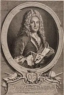 Thomas Fantet de Lagny (7 November 1660 – 11 April 1734) was a French mathematician, well known for his contributions to computational mathematics, and for calculating π to 112 correct decimal places.