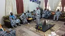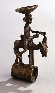 The Kakaki is a royal trumpet used in many West African groups in Nigeria, Niger, Chad and Burkina Faso.[12] This is an instrument used to convey special messages to the people of the community, such as the birth of the child of the King, his naming ceremony, the crowning of a new king, or to gather people together during the marriage ceremony of the king and the king's son's marriage ceremony.[13] This instrument was used to convey all the messages to the people to assemble at the square for the ceremony. When there is an enemy attack on the community, a warning sound of the Kakaki is blown to alert those who can defend the society and every citizen to be alert.[14]