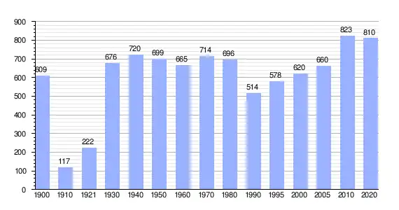 In 2020, it registered a population of 810 people, which corresponds to 4.28 % of the municipal population.[4] Of which 386 are men and 424 are women.[4] It has 1215 private inhabited homes.[4]