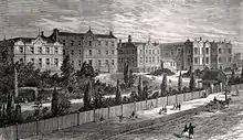 Wills' father sent him to England in February 1850, aged fourteen, to attend Rugby School, then the most prestigious school in the country.[25] In his scheme for his children, Horatio wanted Tom to go on to study law at the University of Cambridge and return to Australia as a "professional man of eminence".[26] Tom arrived in London after a five-month sea voyage. There, during school holidays, he stayed with his paternal aunt Sarah, who moved from Sydney after the death of her first husband, convict William Redfern.[25]
