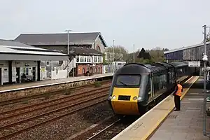 About half of the services are operated by Great Western Railway, including main line services from London Paddington to Plymouth and Penzance.[18] The rest are run by CrossCountry, who operate trains from Plymouth and Penzance through Bristol Temple Meads and Birmingham New Street to Manchester Piccadilly, the north east of England (Leeds and Newcastle) and Scotland (Glasgow Central & Dundee/Aberdeen).[19] Service frequencies to and from London Paddington are approximately hourly for much of the day.