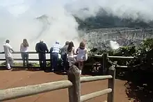 In 2012, most visitors came from the United States (39.3%), Nicaragua (20.2%), Canada (6.5%), Panama (3.9%), and Mexico (2.9%).[33] Tourists from North America and European countries made up 60.8% of all international visitors, and visitors from Central America represented 30.8%.[33] According to a 2006 survey, visitors from the Caribbean Basin and South America travel to Costa Rica mainly for business or professional purposes, while a majority of Americans, Canadians and Europeans visit the country for leisure. Word of mouth from friends and family, with an average of 58%, was the leading reason for visiting Costa Rica for vacations and leisure. The main visitor's complaint is the poor condition of the roads.[5]