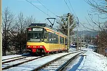 Trams, also known in North America as streetcars, typically operate on or parallel to streets in cities, with frequent stops and a high frequency of service.[73]